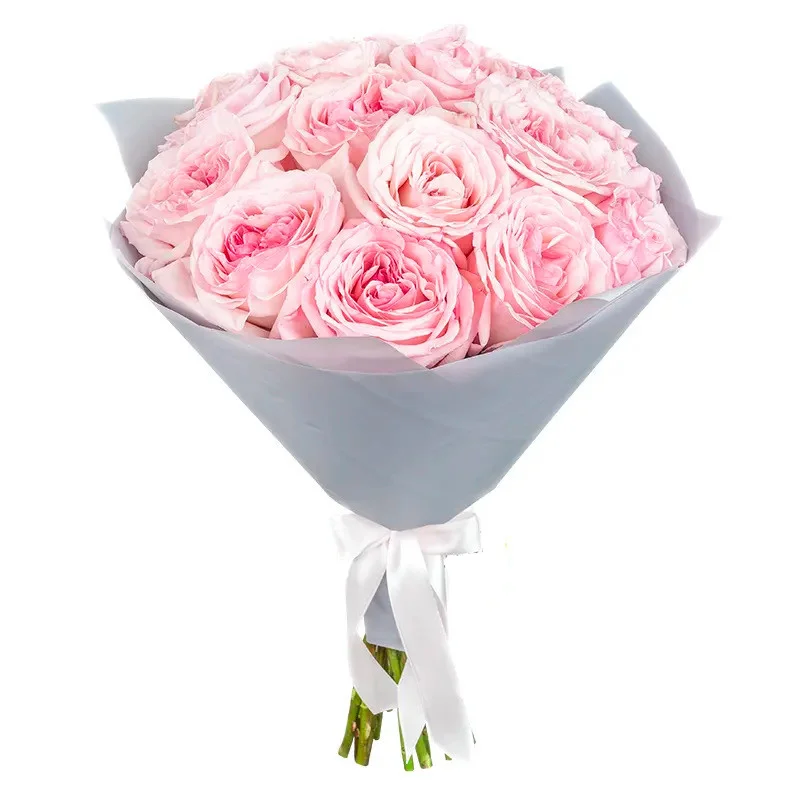 Пионовидные розы, упаковка, лента