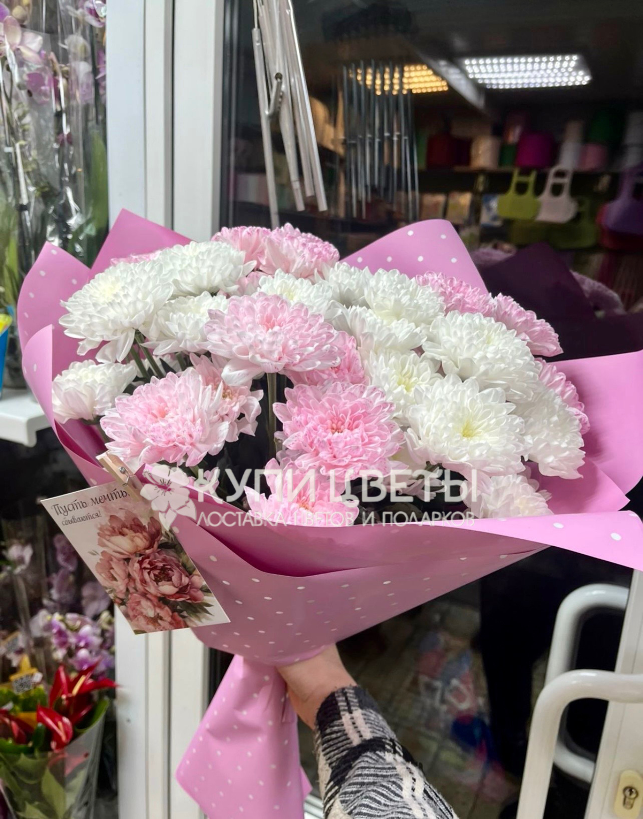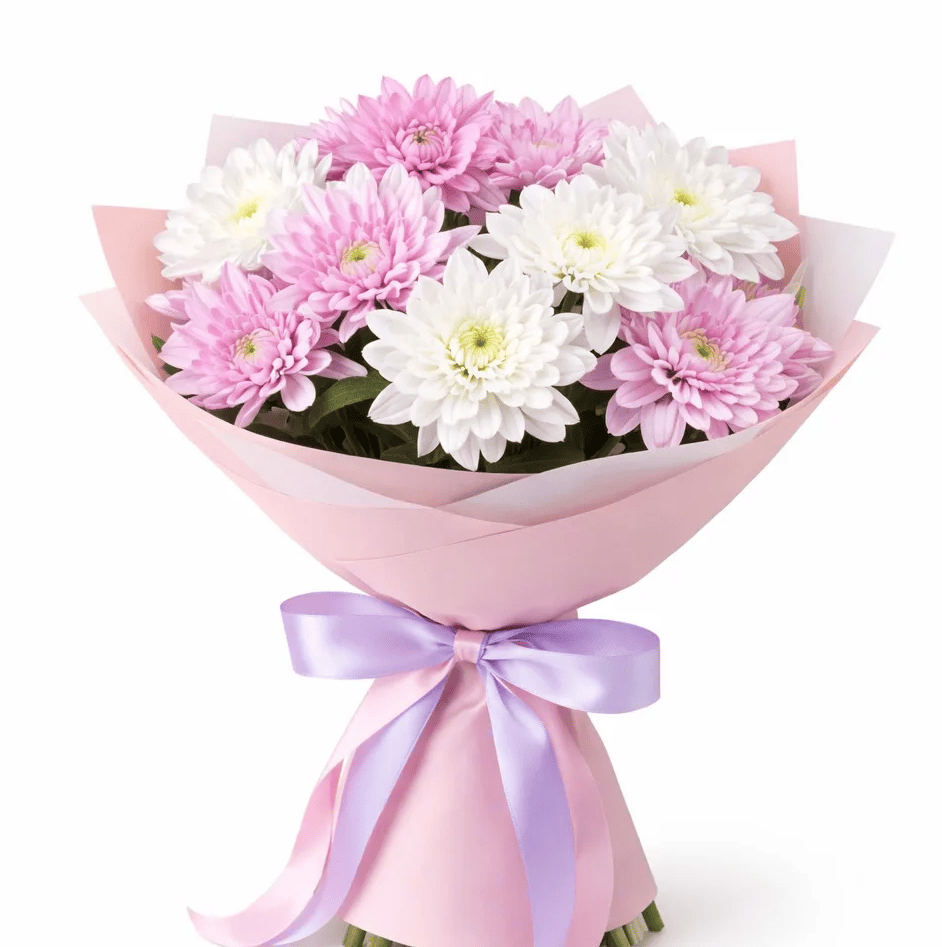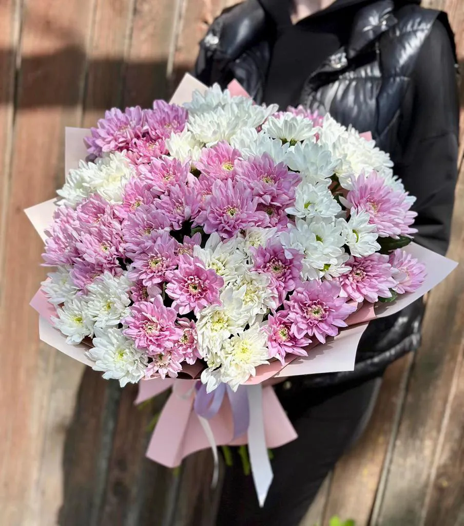 Кустовые хризантемы,упаковка,лента