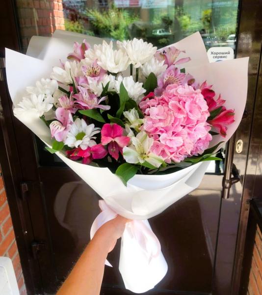 Гортензия, альстромерия, ромашковая хризатема