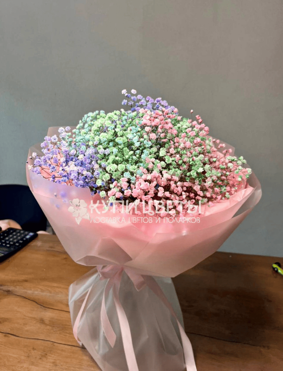 Сделайте день особенным, подарив этот великолепный букет из разноцветных гипсофил .Этот яркий и стильный подарок поднимет настроение вашим близким и любимым.
