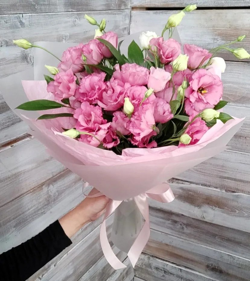 • Средний - эустома - 11 шт., зелень, упаковка, лента