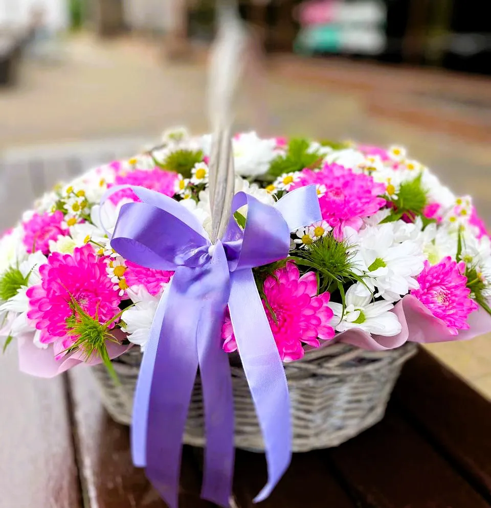 Закажите корзину с хризантемами для своих близких — это станет не только стильным украшением, но и милым подарком, который покажет ваше внимание и заботу. Белые цветы олицетворяют чистоту и невинность, а розовые символизируют нежность и романтику. Эта гармония создаст атмосферу праздника и радости.