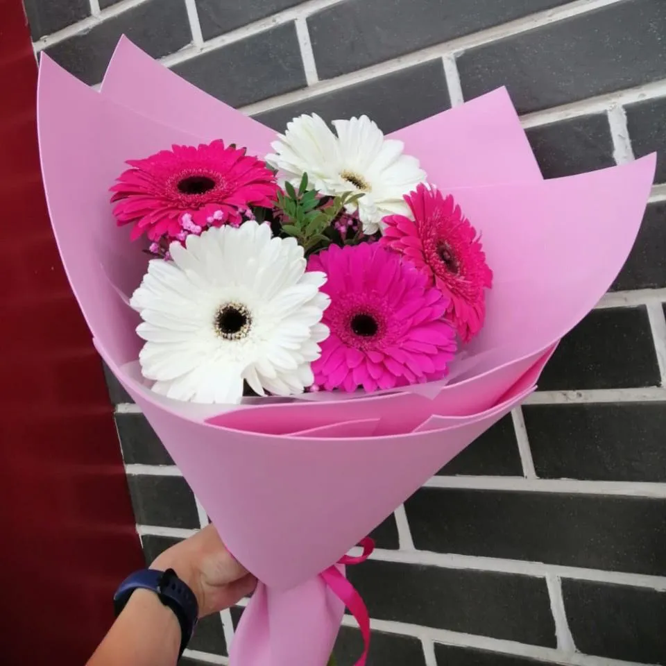 - Стандарт - гербера - 5 шт., упаковка, лента